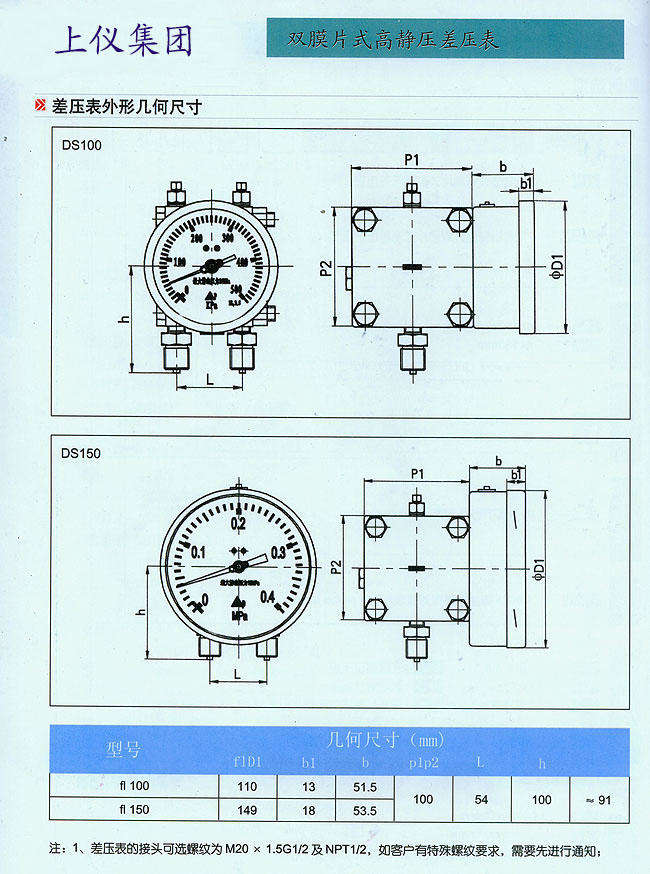 ? ? ? ?表頭形式:外徑100,150密閉型干表? (充油YCAN可選)